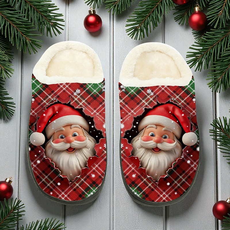 Men's Santa Claus Printed Slippers - Festive Red Santa Face with LED Lights, Cozy Plush Slippers for Christmas Morning, Lounging and Holiday Relaxation