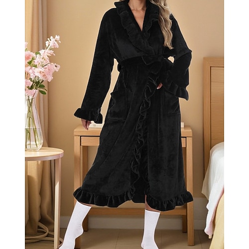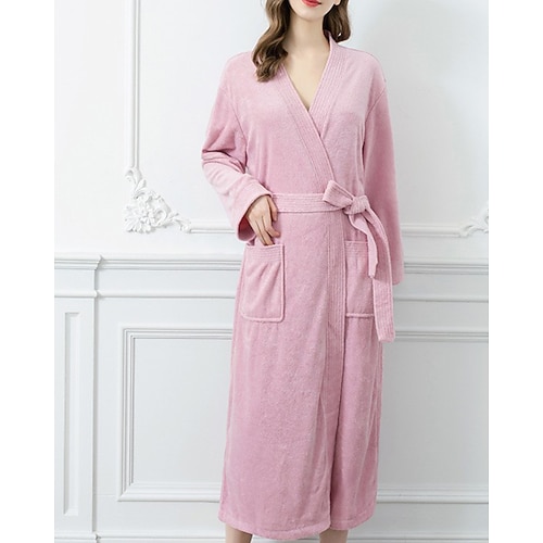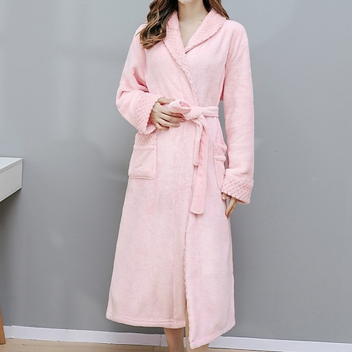 Per donna Pigiama Accappatoio Flanella Moda Casual Colore Puro Tasca Vacanza Casa Da letto Manica Lunga Bavero Bianco Rosa Vino Blu marino Grigio Autunno Inverno Vestibilità su misura