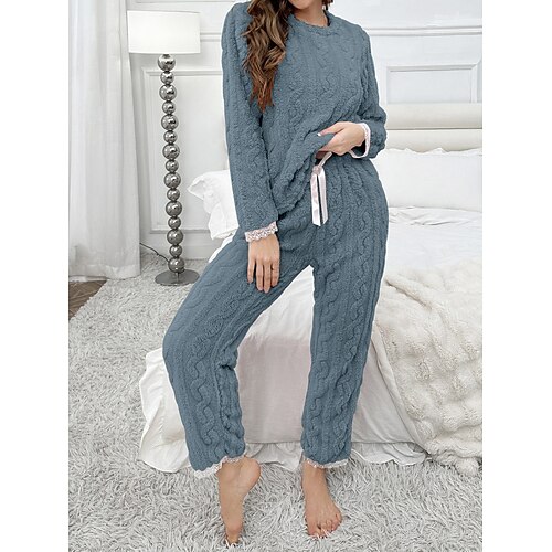 Per donna Pigiama Set Pigiama Flanella Caldo Moda Grafico Elastico in vita Pantalone Casa Quotidiano Manica Lunga Girocollo Rosa Autunno Inverno Vestibilità comoda