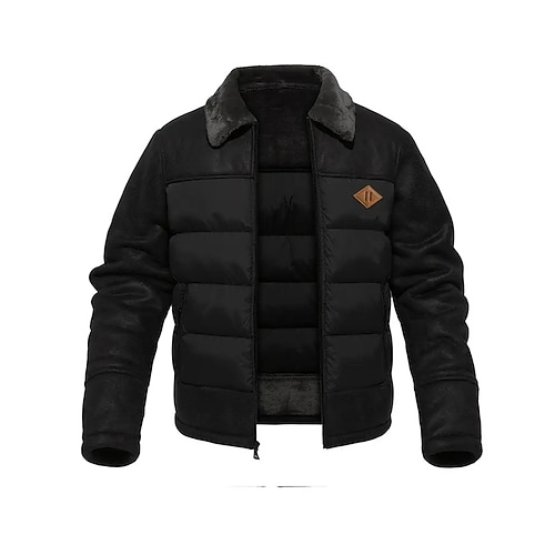 Per uomo Giacca imbottita Giacca Sherpa Tasca Poliestere Vacanza Abbigliamento quotidiano Data Regolare Moda Casual Confortevole Calore Termico Autunno Inverno Colore Solido / Tinta Unita Marrone