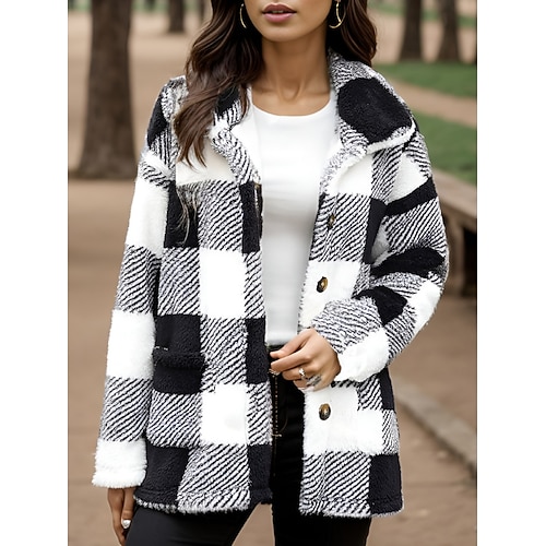 Per donna Giacca in Pile Giacca Sherpa Giacca Casual Confortevole Traspirante Tasca Bottoni Stampato Casual Plaid Vacanza Streetwear Casuale Abbigliamento quotidiano Monopetto Lungo Collo ripiegato