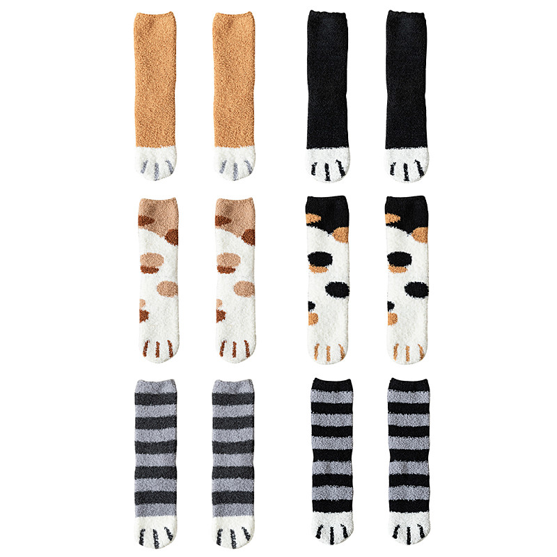 Women's Cotton Blend Socks, Set of 6 Pairs with Cat Paw Print Design, Multiple Colors, Soft and Cozy for Everyday Wear