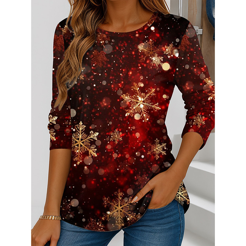 New Year Women's T Shirt Graphic Fashion Modern Long Sleeve Crew Neck Round Neck Regular Tops Daily Weekend Print Blue Black Wine Red Royal Blue Fall Winter