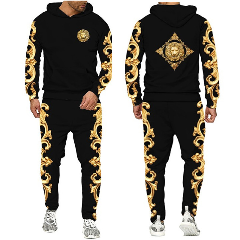 Men's Graphic Florals 2pcs 3D Sweatshirt Sets Tracksuit Hoodies Long Sleeve Long pants Hooded Streetwear Designer Basic Sports Outdoor Casual Sports Print Spring Fall BlackBrown Black Gold