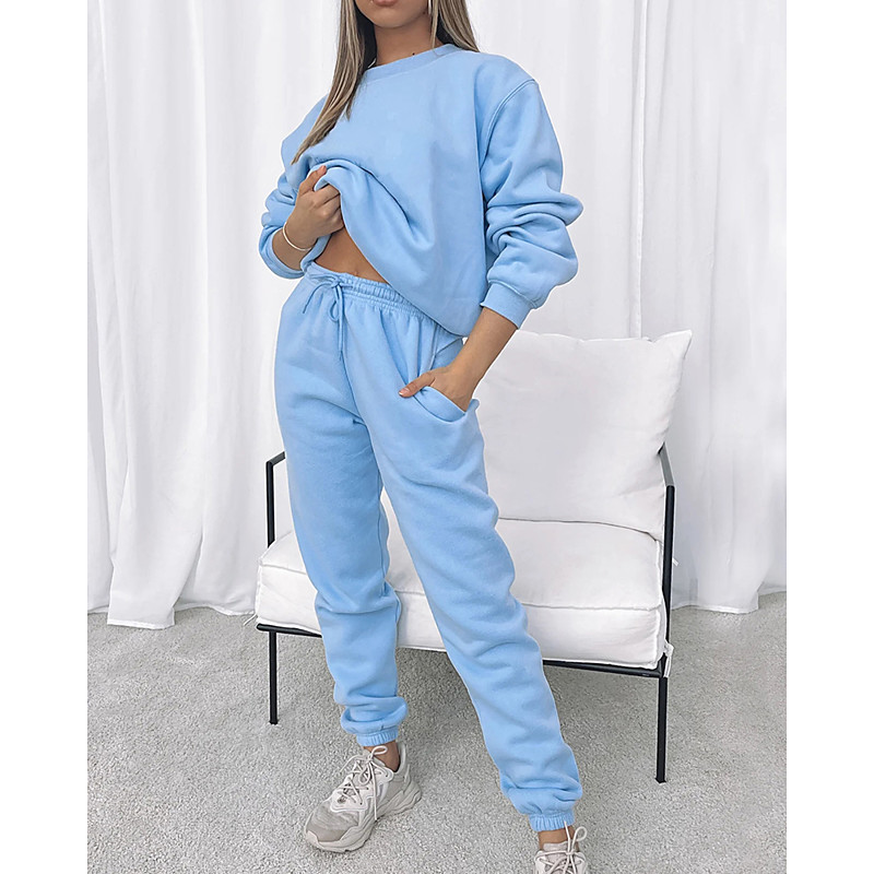 Women's Tracksuit Sweatpants Pullover Sweatshirt Pocket Solid Colored Clothing Suit Spring Black White Gym Training Running Windproof Long Sleeve Sport Activewear Micro-elastic Regular Fit