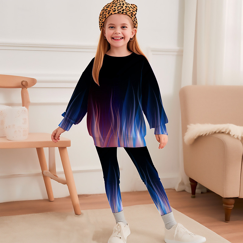 Girls' 3D Graphic Sports Suit Tracksuits Sweatshirt Legging Set Long Sleeve Spring Fall Daily Casual Tights Kids 4-12 Years Crew Neck Outdoor Vacation Sports Tailored Fit