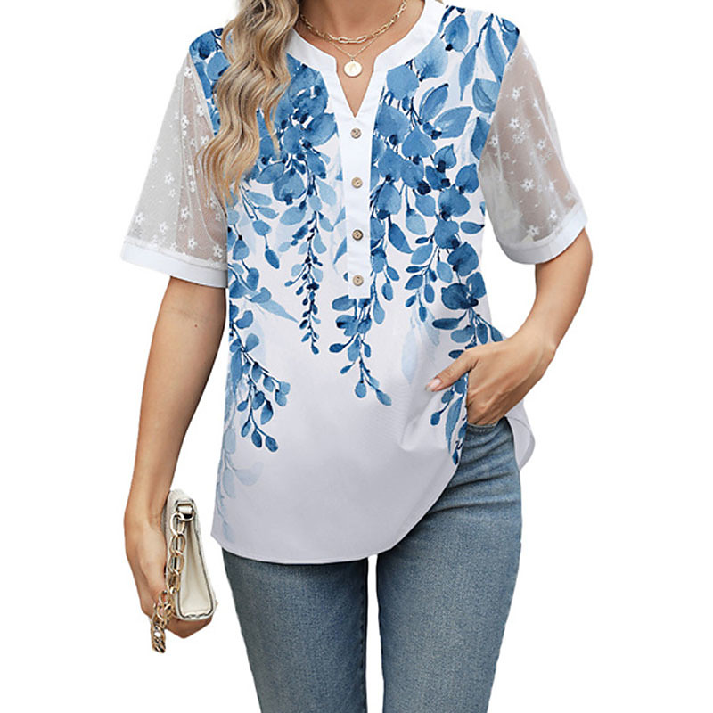 Women's Summer Tops Blouse Dressy Tops Floral Graphic Plain Elegant Vintage Daily Short Sleeve V Neck Regular Tops Daily Work Holiday Ruched Lace Patchwork Blue Grass Green Black Wine Sky Blue Summer