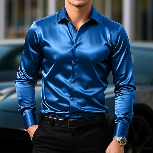 Per uomo Camicia Camicia in raso Camicia casual Camicia con Bottoni Semplice Formale Matrimonio Nero Bianco Vino Blu marino Manica Lunga Bavero Primavera Autunno Tutte le stagioni Abbigliamento
