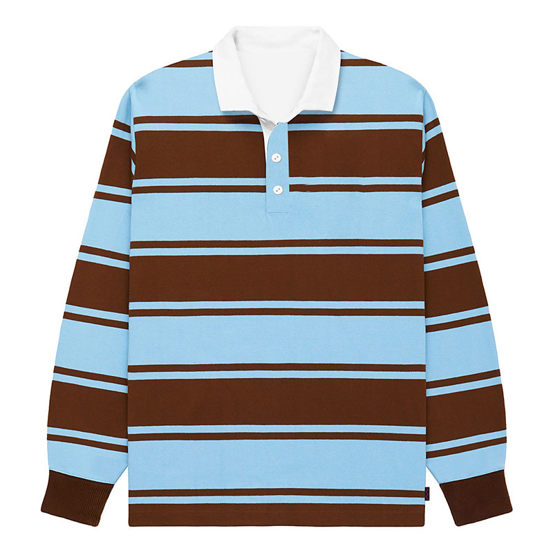 Men's Stripes Rugby Polo Long Sleeve Polo Shirts Collared Shirts Casual School Outdoor Athleisure 3D Print Spring Fall Winter Blue