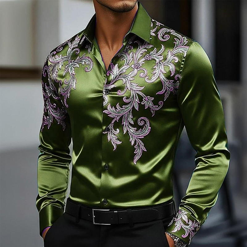 Men's Floral Shirt Button Up Shirt Long Sleeve Casual Daily Holiday Summer Spring Fall Stand Collar Print Green