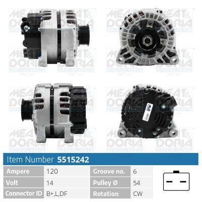 Laturi 14V 120A Meat & doria 5515242 - citroën, peugeot - OE 5705 6N, 5705 8F, 5705 8H
