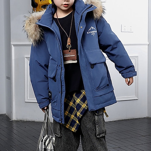 Bambini Ragazzi Giacca in piuma Giacca da esterno Capispalla Lettera Manica Lunga Tenere al caldo Antivento Cappotto Casuale Quotidiano Essenziale Blu Nero Verde Autunno Inverno 5 anni