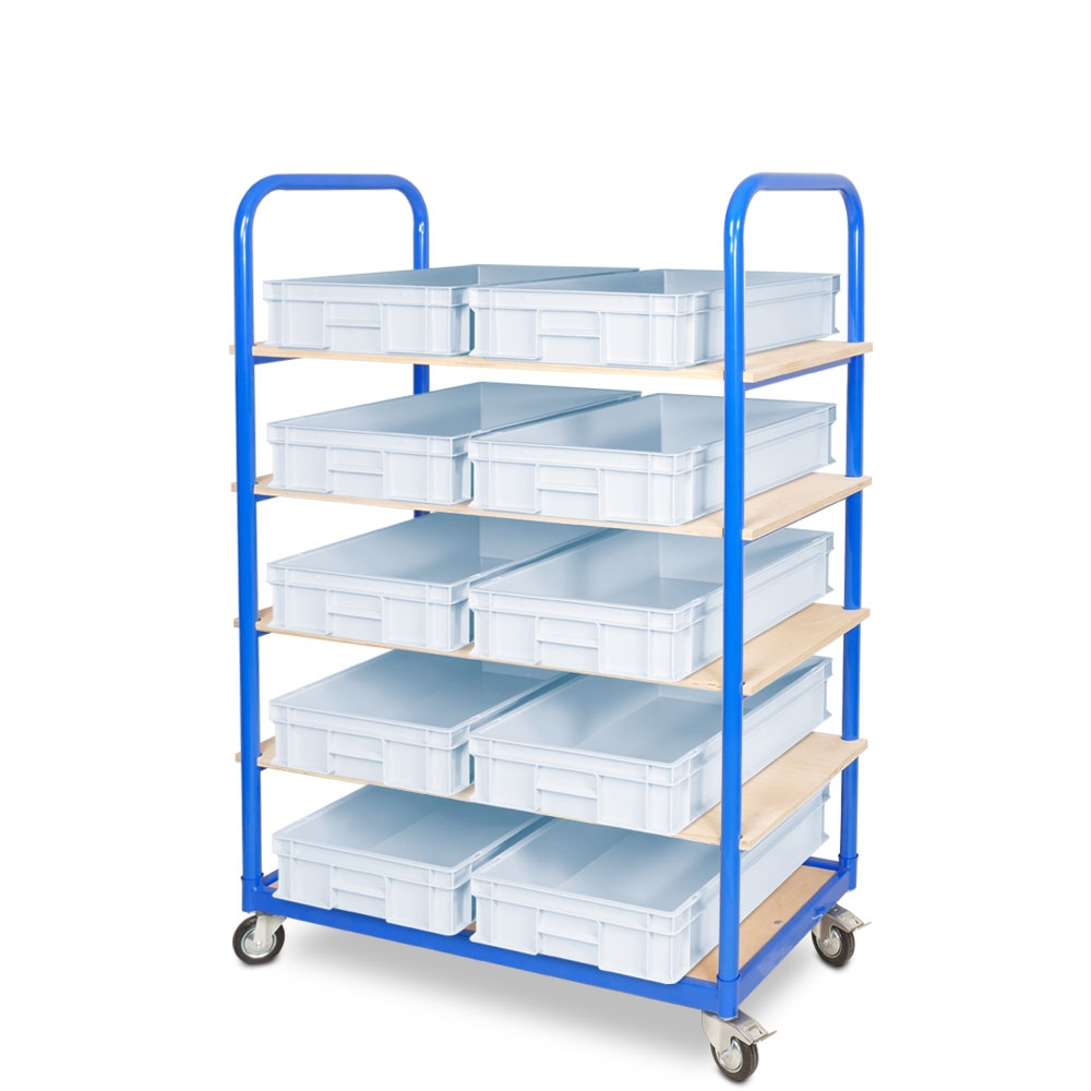 BRB Etagenwagen mit 5 Ebenen, BxTxH 1050x500x1450 mm, bestückt mit 10 Euroboxen BxTxH 600x400x120 mm (weiß)