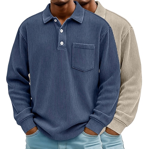 Per uomo Camicia di Velluto a Coste Testurizzato Casuale Sportivo Bavero Manica Lunga Moda Essenziale Blocco di colori 2 Pezzi Caldo Autunno Primavera Autunno Tutte le stagioni Vestibilità regolare