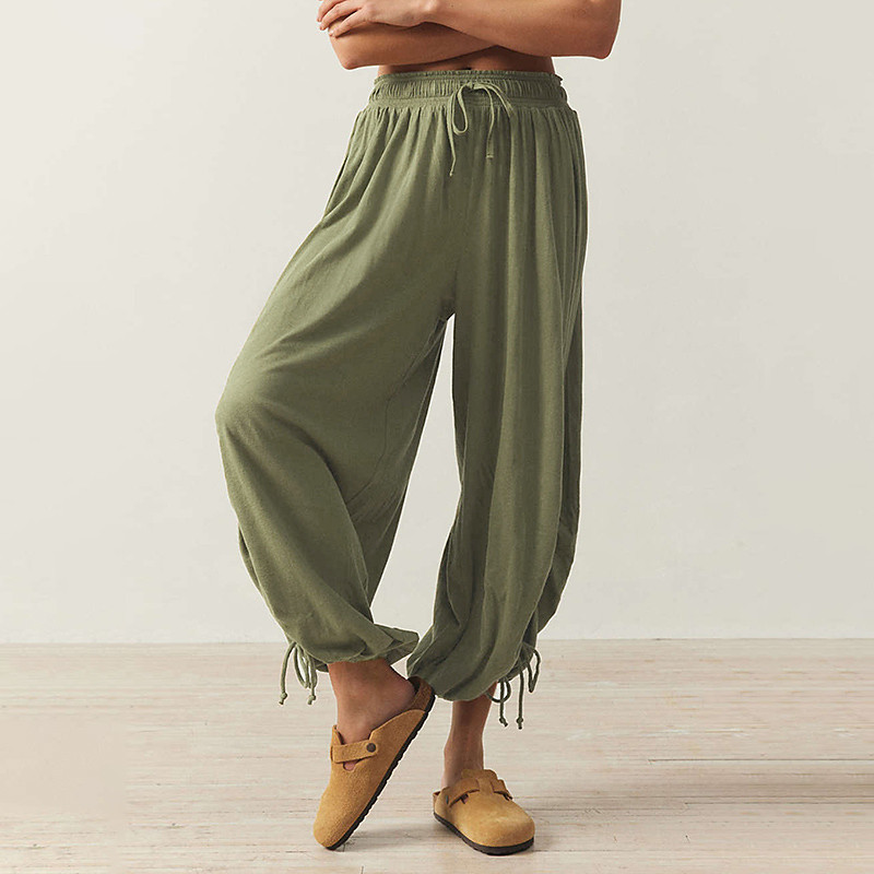 Women's Cropped Bloomers Harem Pants Drawstring High Waist Outdoor Travel Bottoms Solid Color Black Army Green Fuchsia Fall Sports Activewear Loose Fit