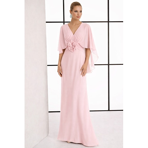 Linea ad A Lunghezza al pavimento Abito da invitata a nozze Vestito in Chiffon Abito da sera Abito da cerimonia per signora Manica 3/4 Scollo a V Elegante Formale Ospite di nozze Semi-Formale Chiffon
