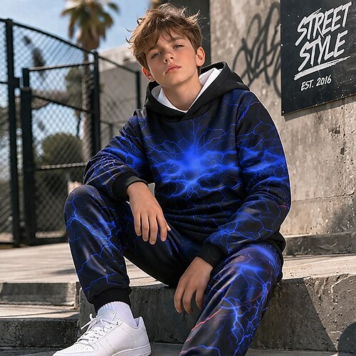 Ragazzi 3D Grafico Fulmini Set Felpa con cappuccio Pantaloni della tuta Tuta sportiva Tute da ginnastica Manica Lunga Stampa 3D Primavera Autunno Sport Moda Casual Bambini 4-12 Anni Con cappuccio