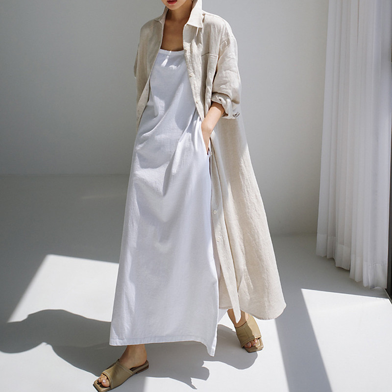 Women's Long Dress Maxi Dress Cotton Blend Shirt Dress Casual Dress Stylish Casual Daily Vacation Date Regular Fit Plain Long Sleeve Lapel Black Navy Blue Apricot Summer Spring