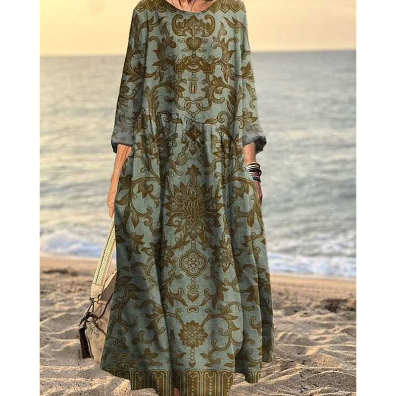 Women's Long Dress Maxi Dress Casual Dress Print Dress Elegant Fashion Modern Daily Outdoor Beach Regular Fit Graphic Long Sleeve Crew Neck Blue Red Orange Brown Spring Autumn