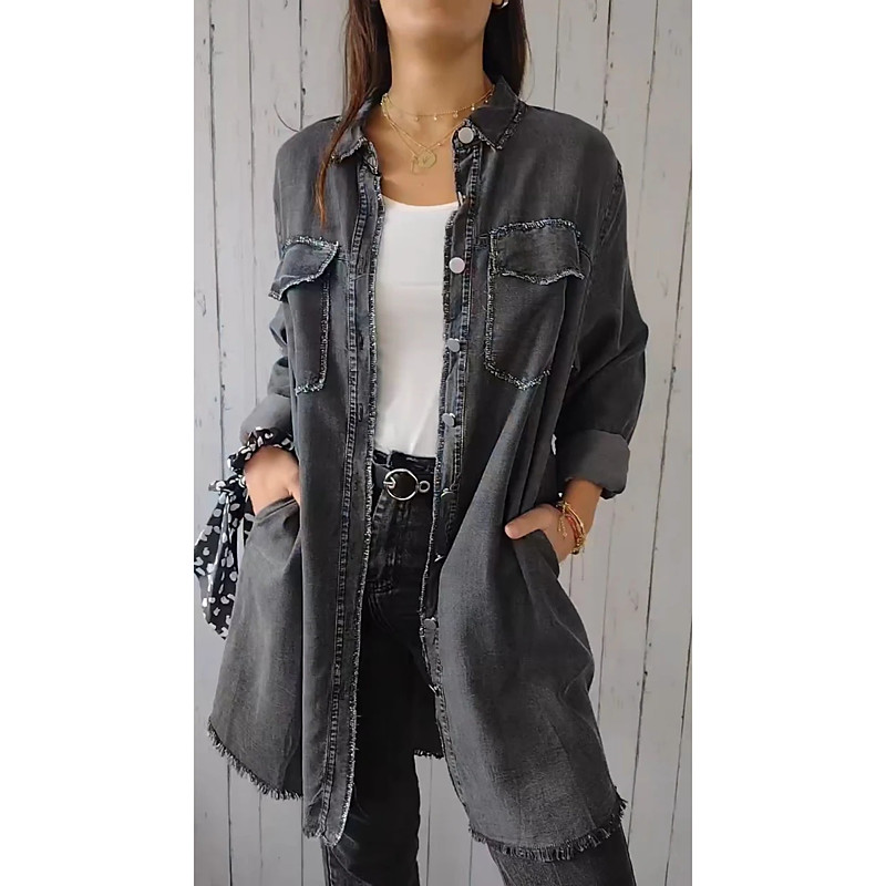Women's Blouse Plain Vintage Daily Stylish Long Sleeve Shirt Collar Long Tops Daily Holiday Going out Pocket Buttons Blue Black Gray Light Blue Summer Spring Fall