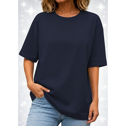 T-Shirt Oversize da Donna in 100% Cotone Tee T-Shirt Monocromatica Moda Classica Casual Manica Corta Collo Regolare Top Regolari Sport Uscita Giornaliera Nero Bianco Rosa Verde Militare Blu Navy