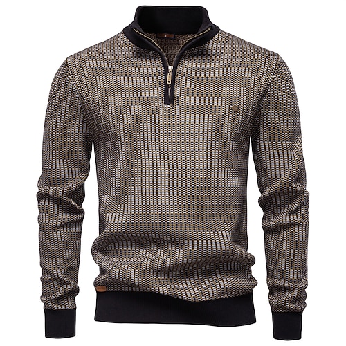 Per uomo Maglione Treccia Maglia Top Regolari Mezza cerniera Blocco di colore Geometrico Colletto Mao Elegante Cool Scuola Vacanza Abbigliamento Primavera Autunno Nero Marrone S M L