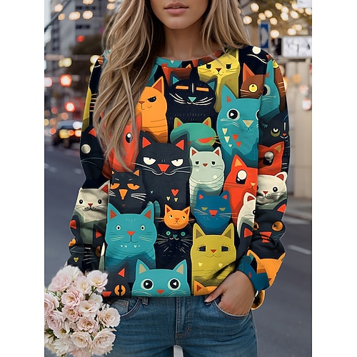Per donna Felpe Grafico Animale Casual Manica Lunga Girocollo Top Regolari Streetwear Casuale Ferie Stampato Nero Giallo Verde chiaro Verde Primavera Autunno Inverno