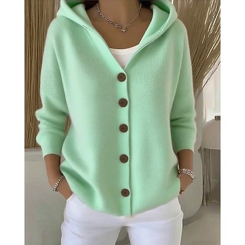 Per donna Felpa Casual Tinta unica A Coste Con Cappuccio Bottoni Lavorato a maglia Manica Lunga Top Regolari Maglia Quotidiano Uscire Weekend Nero Bianco Autunno