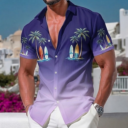 Per uomo Albero di cocco Colore sfumato Piante tropicali Camicia hawaiana Camicia con bottoni Camicia Aloha Manica corta Hawaiano Ricorrere Da mare Per eventi Abbigliamento mare Estate Primavera