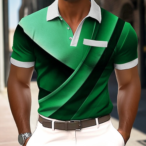 Herren Geometrisch Linie Polo Kurzarm Polo-Shirts Hemden mit Kragen Business-Casual Outdoor Athleisure Alltagskleidung Tasche 3D-Druck Sommer Blau Weiß Rote