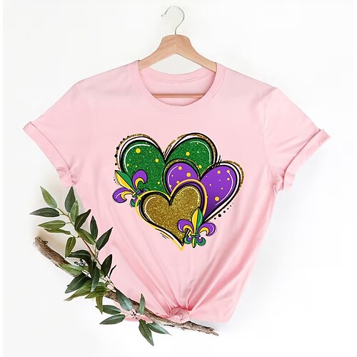 Per donna maglietta Cotone Con cuori Carnevale Per uscire Fine settimana Nero Bianco Rosa Stampa Manica corta Di tendenza Rotonda Standard Primavera estate
