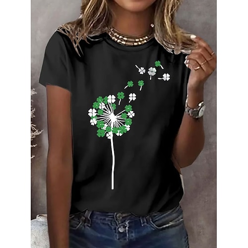 Festa di San Patrizio Per donna Maglietta Grafico Trifoglio Elegante Classico Casual Manica Corta Girocollo Top Regolari Quotidiano Stampato Nero Bianco Verde Estate Primavera