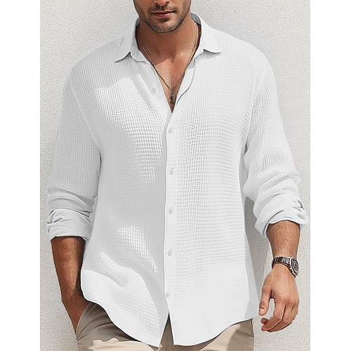 Per uomo Camicia Camicia estiva Camicia con bottoni Maglietta informale Camicia a cialda Nero Bianco Blu Kaki Manica lunga Liscio Bavero Giornaliero Da mare Abbigliamento Di tendenza Informale Comodo