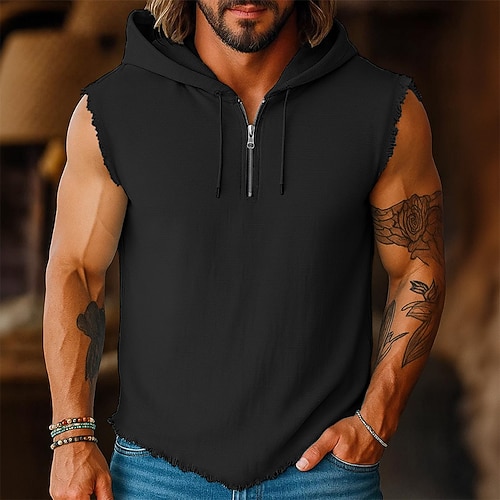 Per uomo Camicia di lino Canotta Gilet Canottiera Senza Maniche Con Cappuccio Estate Tutte le stagioni Semplice Moda Streetwear Classico Zip a un quarto Streetwear Casuale Sportivo Nero Rosa Blu