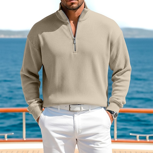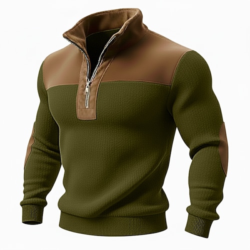 Per uomo Maglia Maglione Felpa con zip corta Maglia a coste Aalbicocca Nero Bianco Verde Colletto Mao Semplice Patchwork Blocco di colore Testurizzato Casuale Quotidiano Sport Outdoor Streetwear