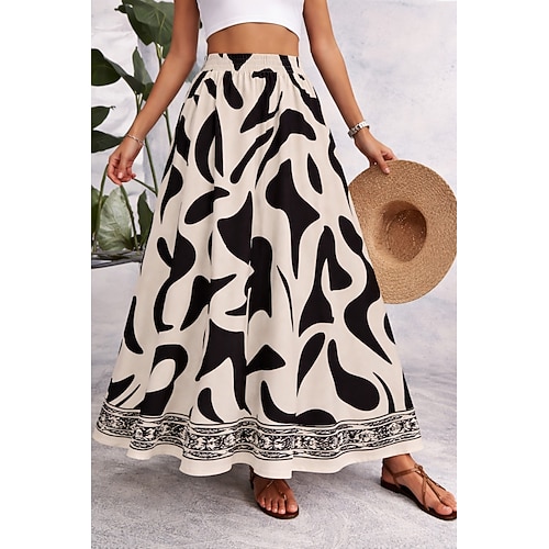 Per donna Gonna da vacanza Elegante Moda Casual Maxi Vita Alta Gonne Floreale Grafico Tasca Stampato Micro-elastico Quotidiano Spiaggia Nero Cachi Estate 95% poliestere 5% spandex