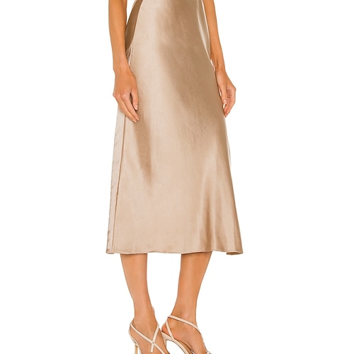 Per donna Gonne in raso Elegante Moda Midi Vita Alta Gonne Semplice Con Spacco Micro-elastico Feste Data Nero Champagne Marrone Verde Estate Raso Poliestere