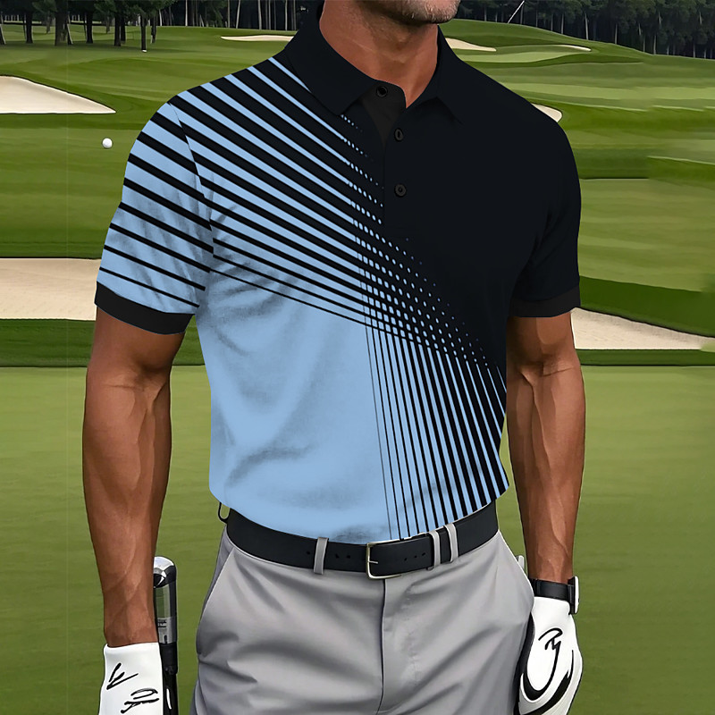 Herren Sport-Polo Poloshirt Casual Festtage Kargen Kurzarm Modisch Basic Farbverlauf Taste Sommer Regular Fit Wein Weiß Grau Sport-Polo
