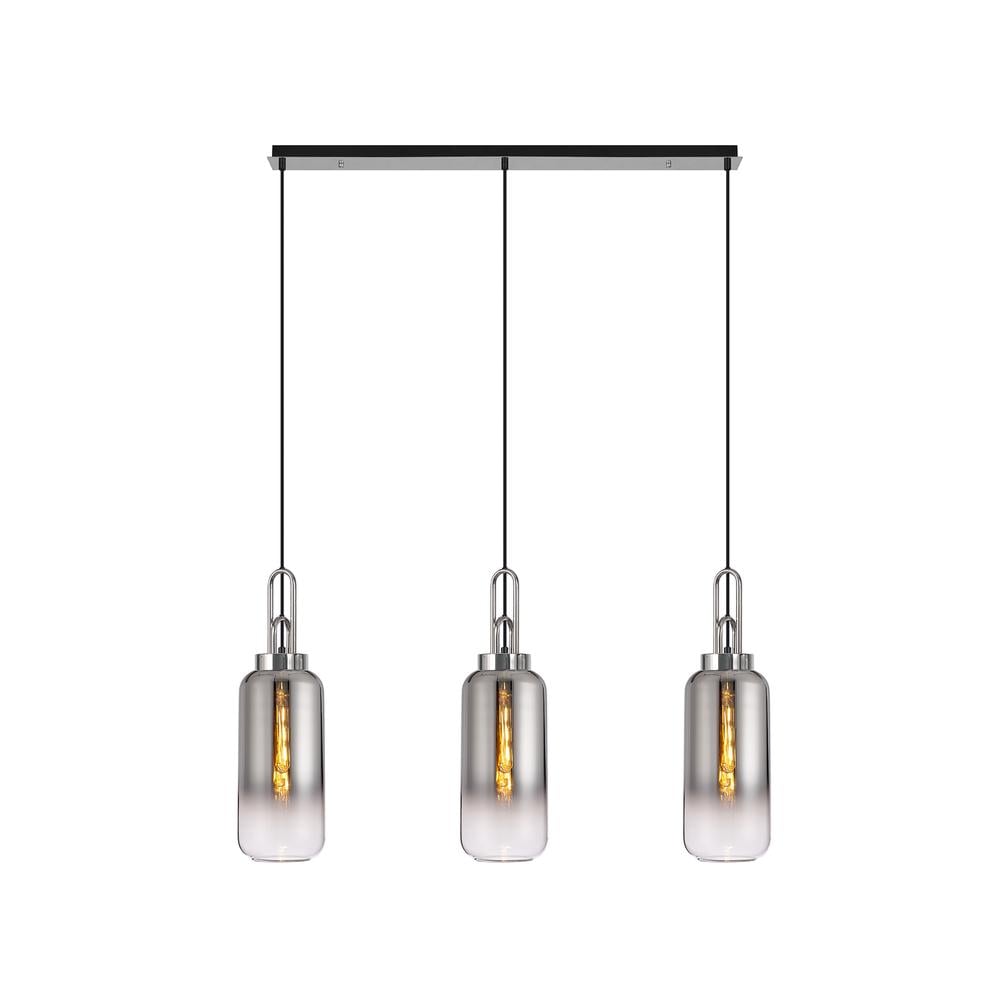 Kennith Linear 3 Light Pendant E27 With 16cm Cylinder Glass Smoked/Clear Polished Nickel/Matt Black Luxuria