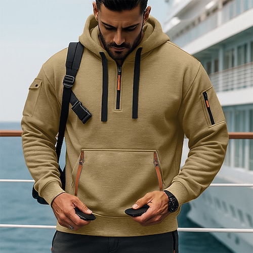 Per uomo Felpa con cappuccio Maglione Felpa con cappuccio e zip corta Nero Rosa Verde militare Blu Reale Cachi Con Cappuccio Semplice Tasca Zip a un quarto Sport Outdoor Casuale Quotidiano