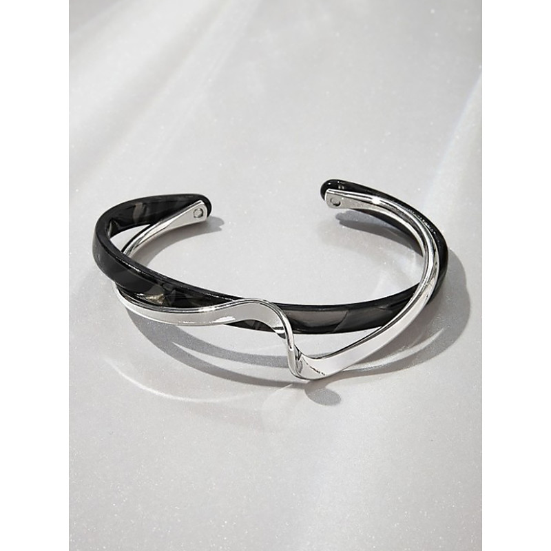 Women's Gold and Resin Bangle Bracelet, Elegant Wave Design Cuff Jewelry for Parties, Weddings and Daily Wear