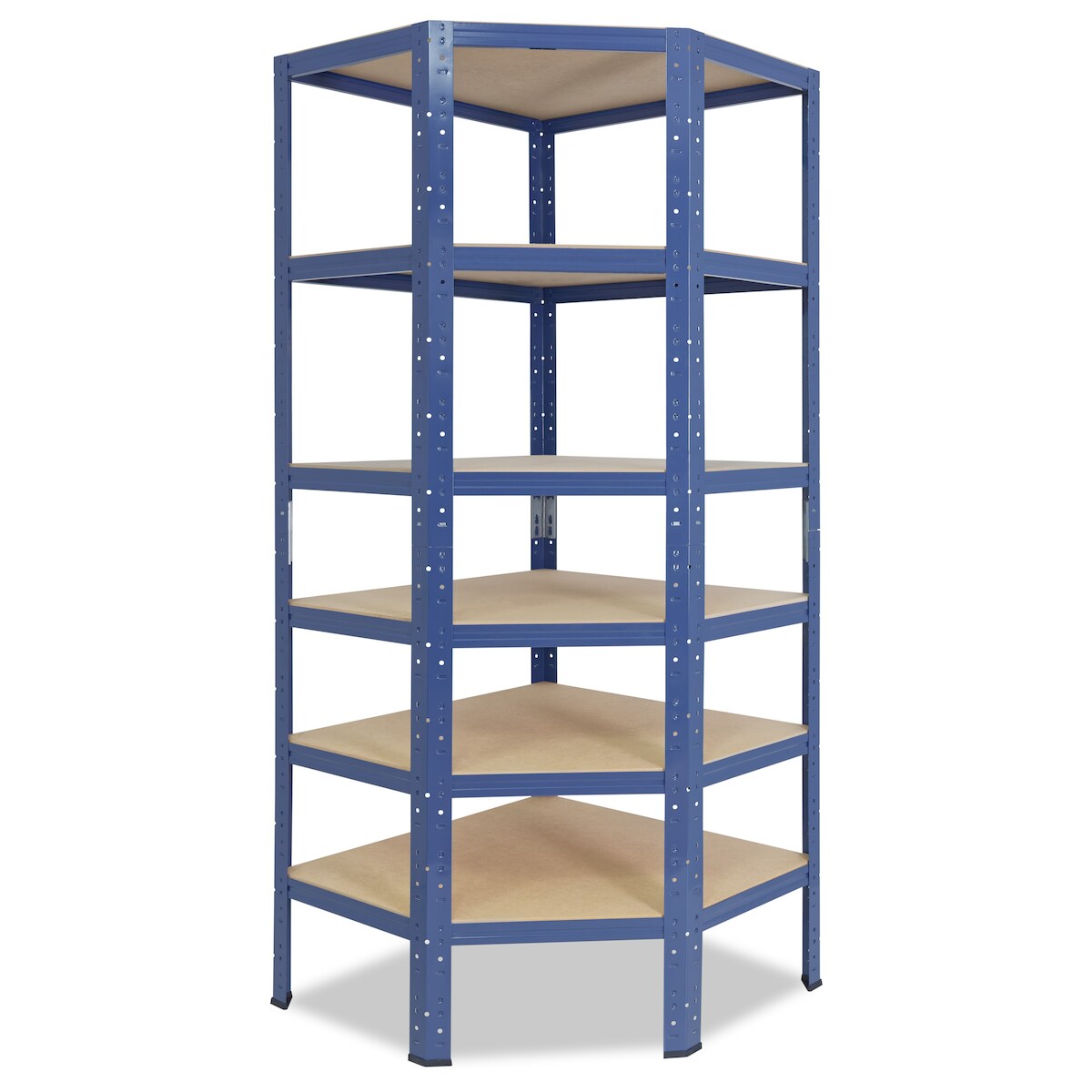 shelfplaza HOME 230x90x60 cm Eckregal in blau mit 6 Böden und 145 kg Traglast pro Boden