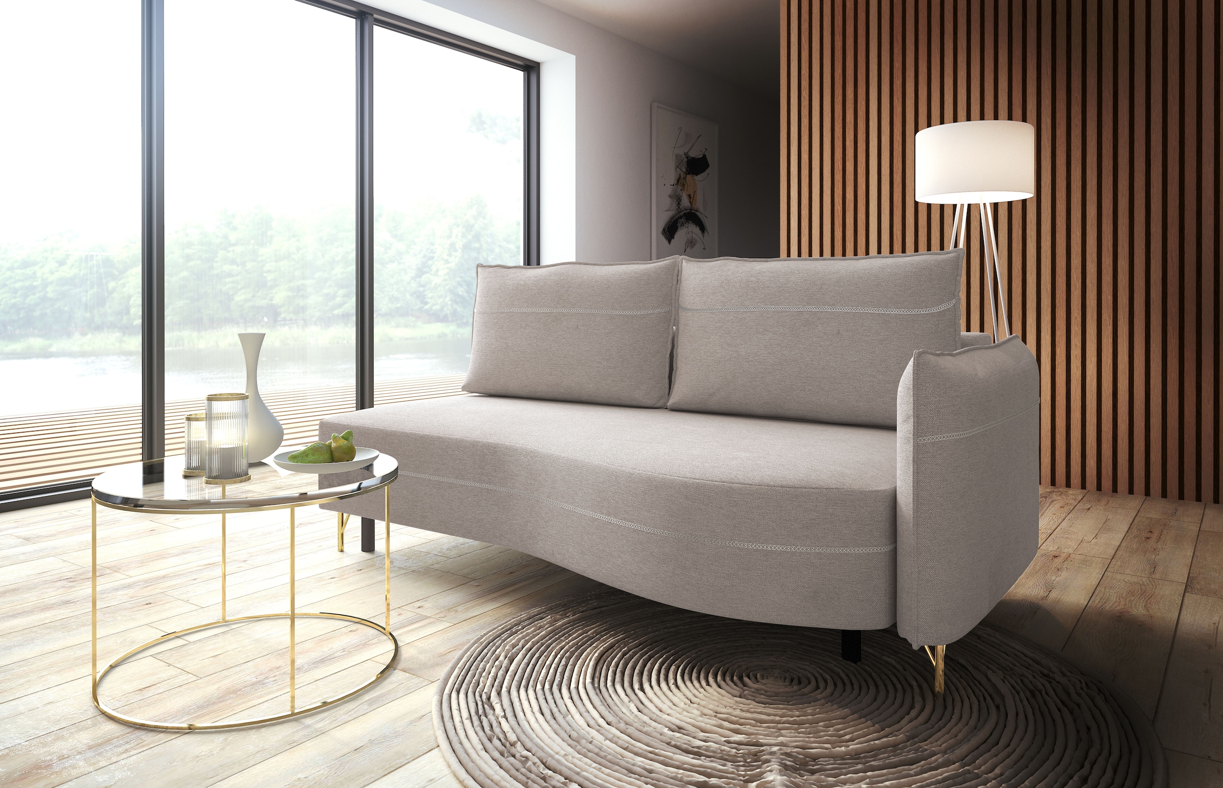 Loungesofa EXXPO - SOFA FASHION "Ortis mit toller Kontrastnaht, Solitärmöbel, bequem, schmale Armlehne", beige, B:212cm H:93cm T:114cm, Sofas, Lounge-Sofa, Schlafsofa mit Bettfunktion und Bettkasten, komfortabler Federkern