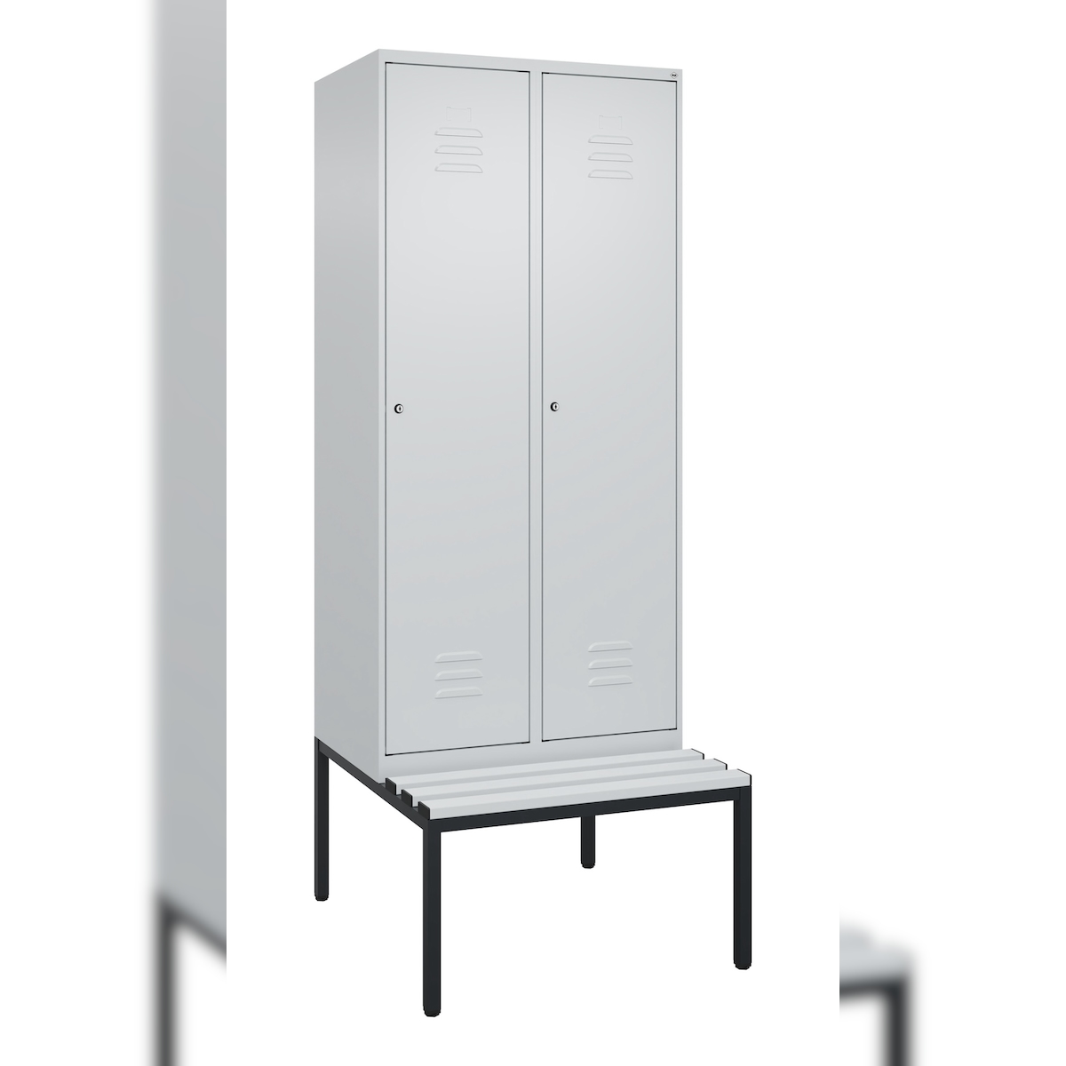 C+P Spind Classic PLUS, Kunststoff untergebaute Sitzbank, 2 Abteile, HxBxT 212x80x82cm, Zylinderschloss, Hellgrau/Hellgrau von PROREGAL