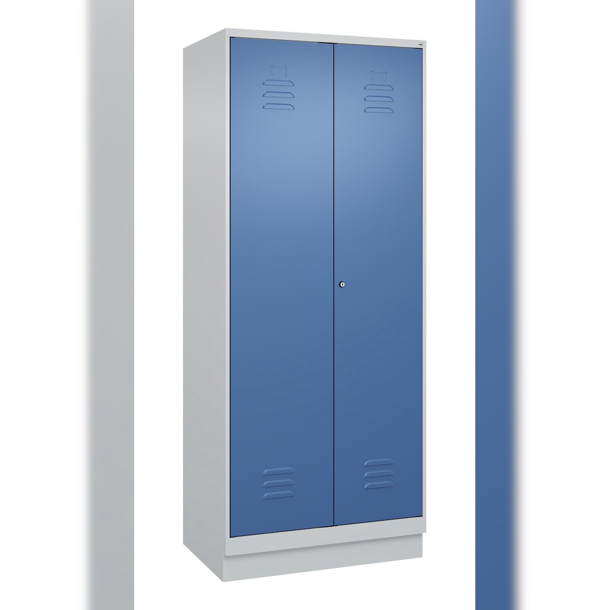 C+P Aufbewahrungs Doppel-Spind Classic PLUS, Sockel, 2 Abteile je 4 Fachböden, HxBxT 195x80x50cm, Zylinderschloss, Hellgrau/Fernblau von PROREGAL