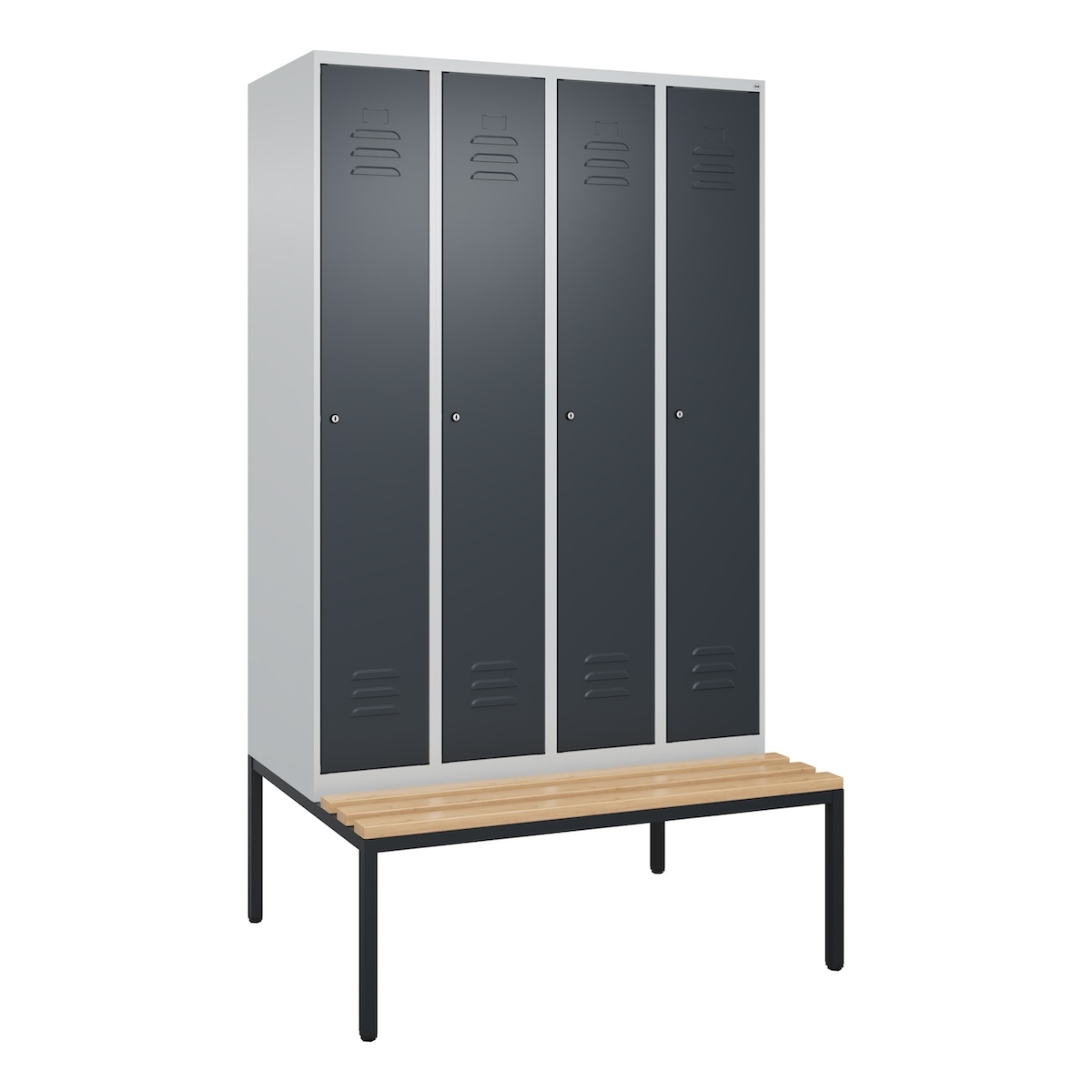 C+P Spind Classic PLUS, Buche untergebaute Sitzbank 4 Abteile, HxBxT 212x120x82cm, Zylinderschloss, Hellgrau/Anthrazit von PROREGAL