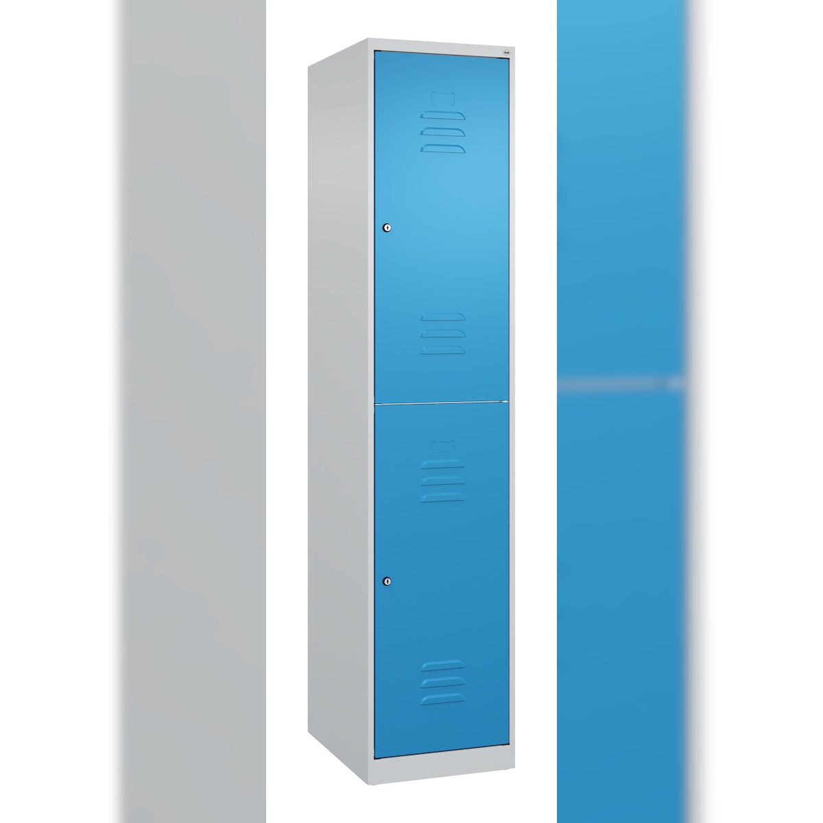 C+P Spind Classic PLUS, 2 Abteile, HxBxT 185x40x50cm, Zylinderschloss, Hellgrau/Lichtblau von PROREGAL