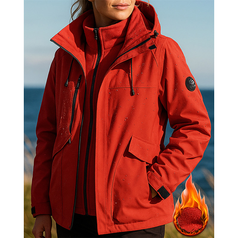 Women's Hiking Jacket Fleece Jacket Winter Coat 3 in 1 Jacket Winter Outdoor Waterproof Windproof Top Black White Red Purple