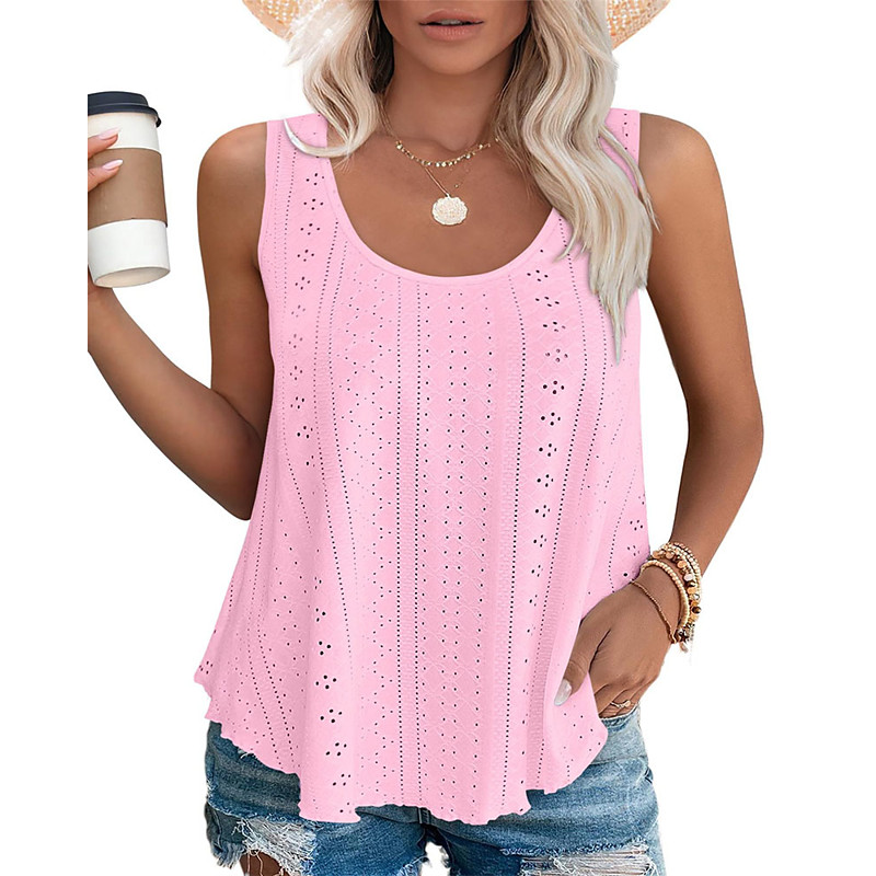 Women's Summer Tops Blouse Eyelet top Dressy Tops Plain Elegant Vintage Daily Sleeveless U Neck Regular Tops Daily Work Holiday Ruched Patchwork Eyelet Blush Pink Black White Pink Fuchsia Summer