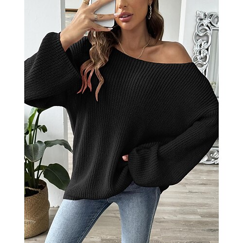 Per donna Felpa Maglione Streetwear Casual Tinta unica Girocollo Lavorato a maglia Manica Lunga Top Regolari Maglia Quotidiano Uscire Weekend Nero Bianco Primavera Autunno